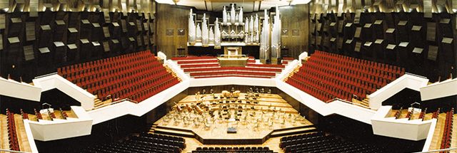The Large Hall is a concert hall with exceptional acoustic conditions. Designed like an amphitheatre it seats 1,900 guests. The Mendelssohn Hall is a multi-functional hall for up to 498 guests. The foyers have been arranged on three levels. Each of the areas may be used individually.